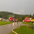 Übungsannahme: Brand in der Fahrzeughalle bei Familie Kaindl. Zur Herausforderung wurde unser TLF bewusst außer Dienst gestellt – somit ging’s nur mit MTF & GLF raus!
